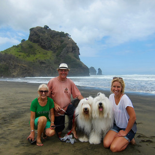 Also wonderful to do on a summer day is visit Piha beach on the West Coast- best when you bring along two polar bears!!! (Show photos) These two beauties you see photographed are world class, chamipion show pups, old english sheep dogs. You can see them in past dog shows and dulux paint commercials. Keep an eye out for these celebrities in the city this summer! I hear they might be going to Lake Taupo sometime soon...